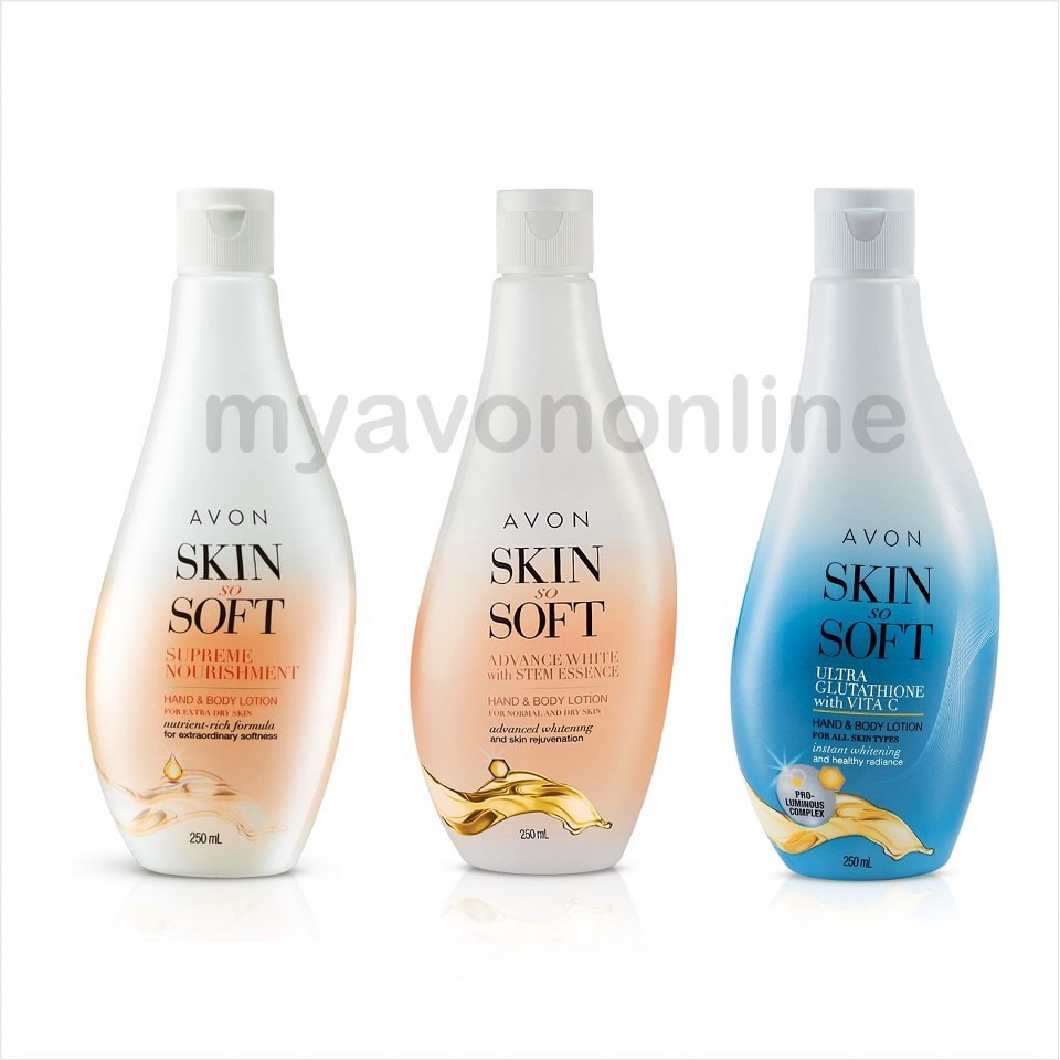 The avon skin so soft glutathione whitening toner avon skin so soft glutathione whitening facial cream for night and avon skin so soft glutathione whitening facial cream for day. It s pretty nice flip cap top is also nice but this cap makes the lotion messy but that s fine with me. Ok lets review this product avon skin so soft soft and white glutathione skin renewal hand and body lotion with spf.